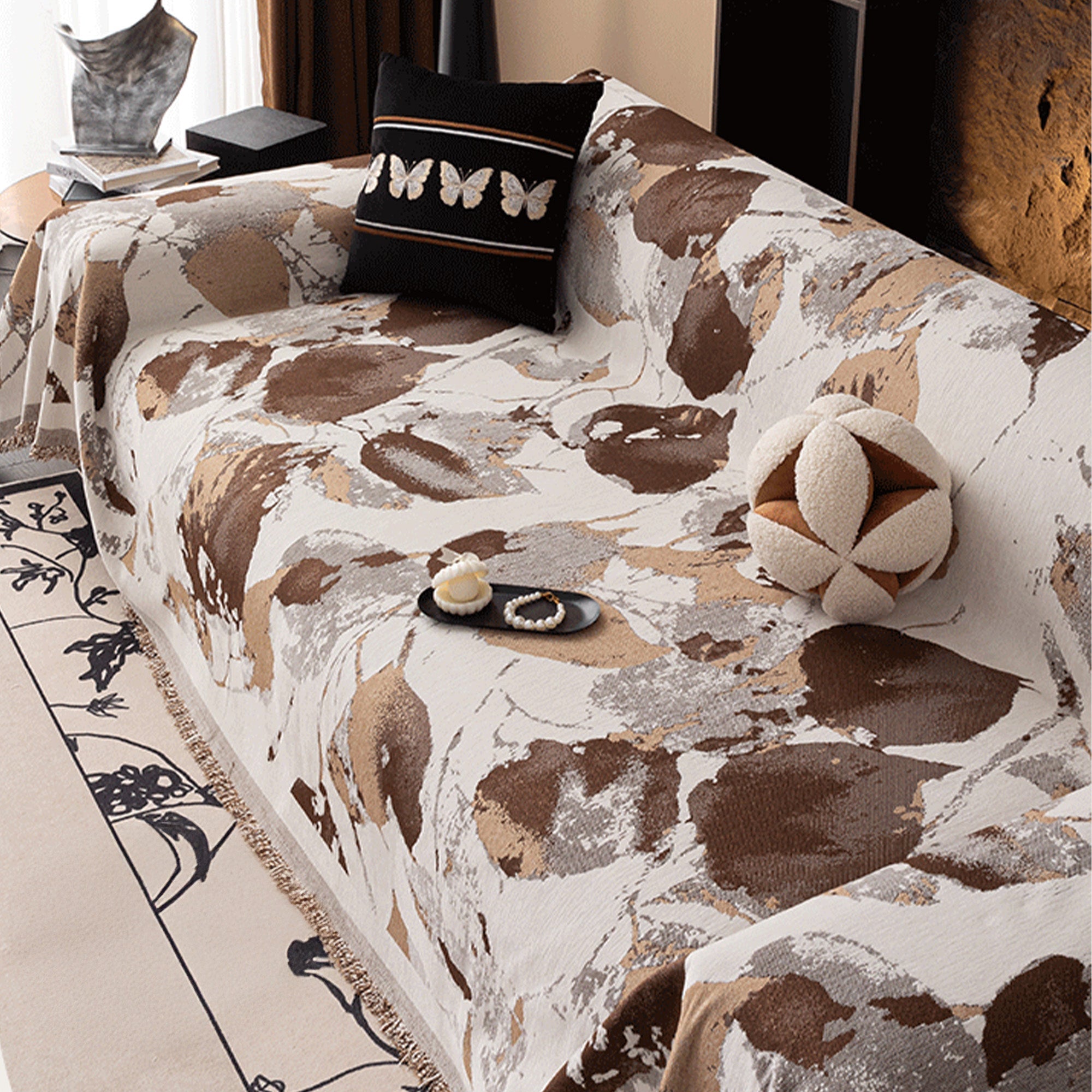 ارتقِ بمساحتك مع غطاء الأريكة المُقاوم للخدش من قماش الشنيل المُجرّد بفرشاة. يُضفي النمط المُستوحى من الرخام، ذو الطابع الفني، لمسةً عصرية، بينما يتميز قماش الشنيل المُخملي بنعومة ملمسه ومتانته الكافية للاستخدام اليومي. كما أنه مُناسب للحيوانات الأليفة ومضاد للانزلاق، ويحمي أريكتك من الفرو والانسكابات والخدوش دون المساس بالراحة.