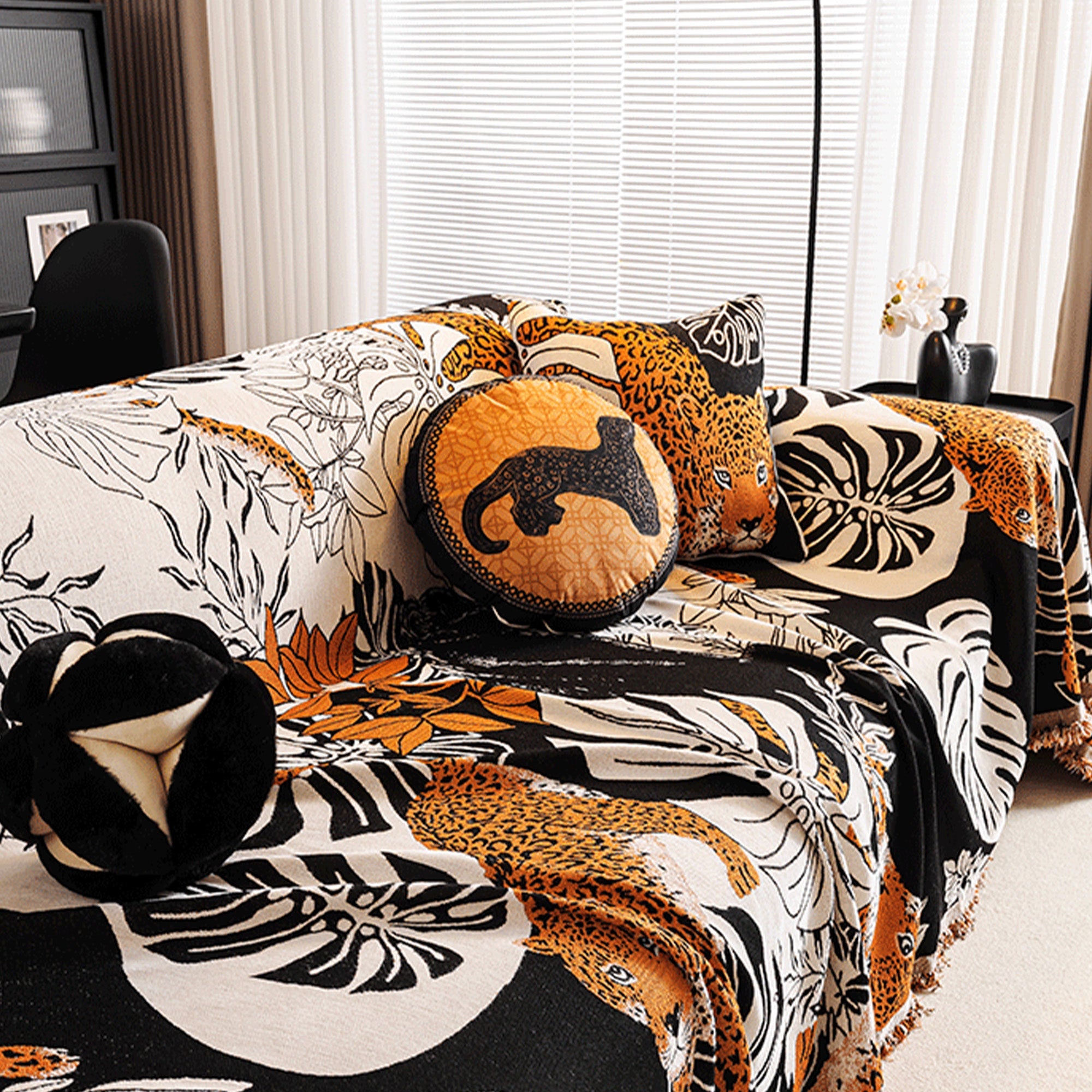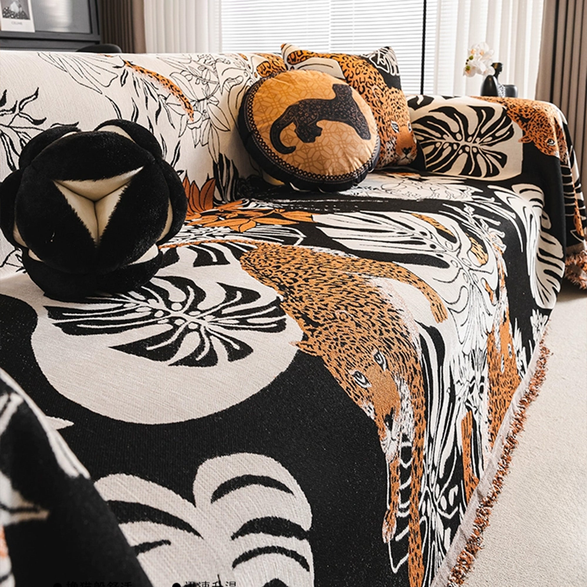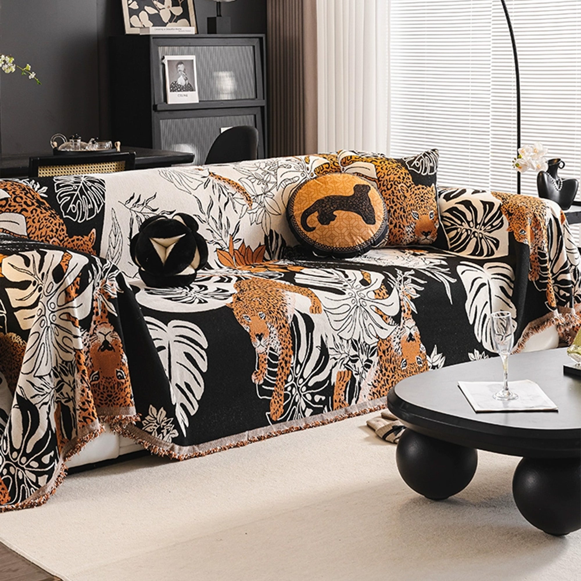 غطاء أريكة مقاوم للخدش من قماش الشنيل بنقشة جلد الفهد