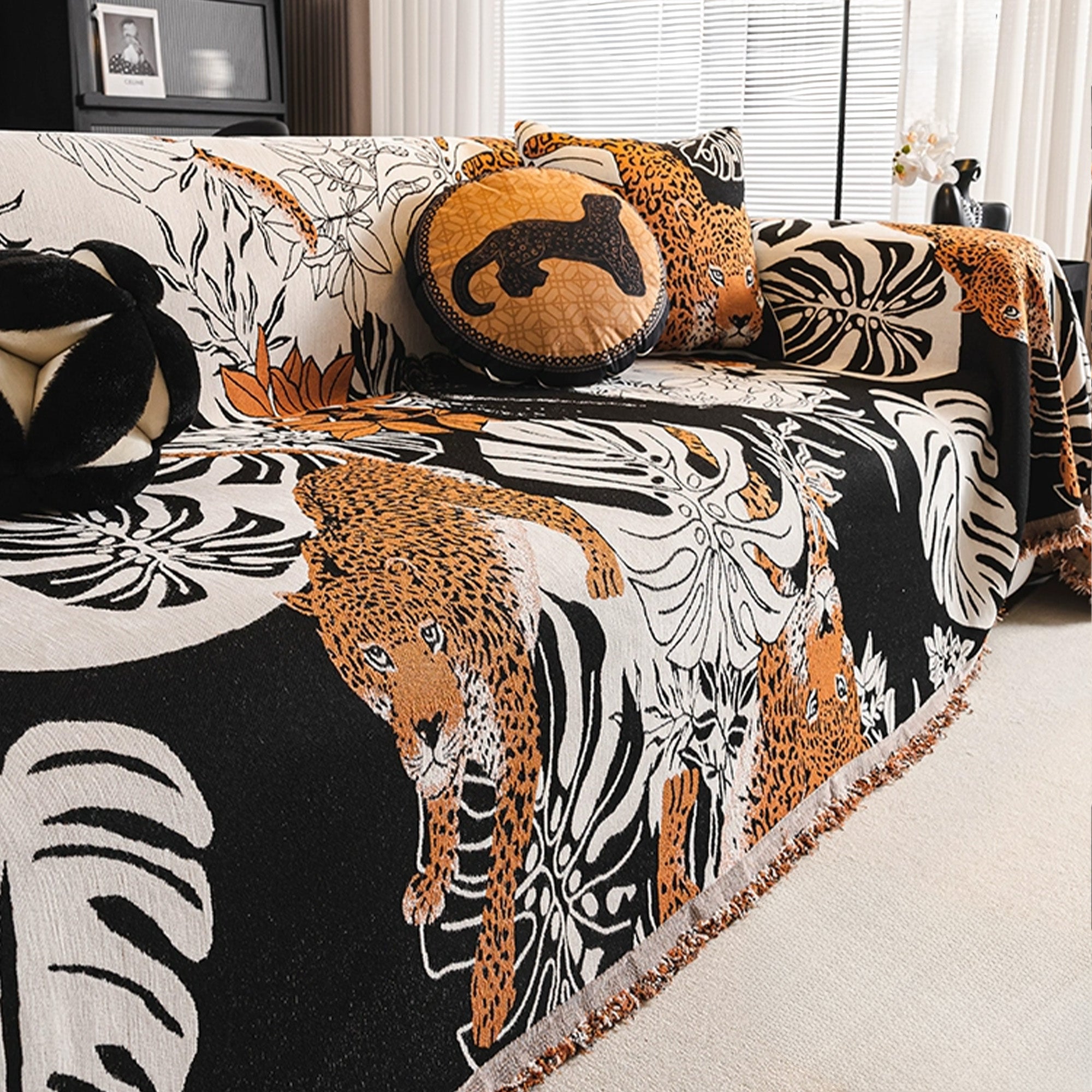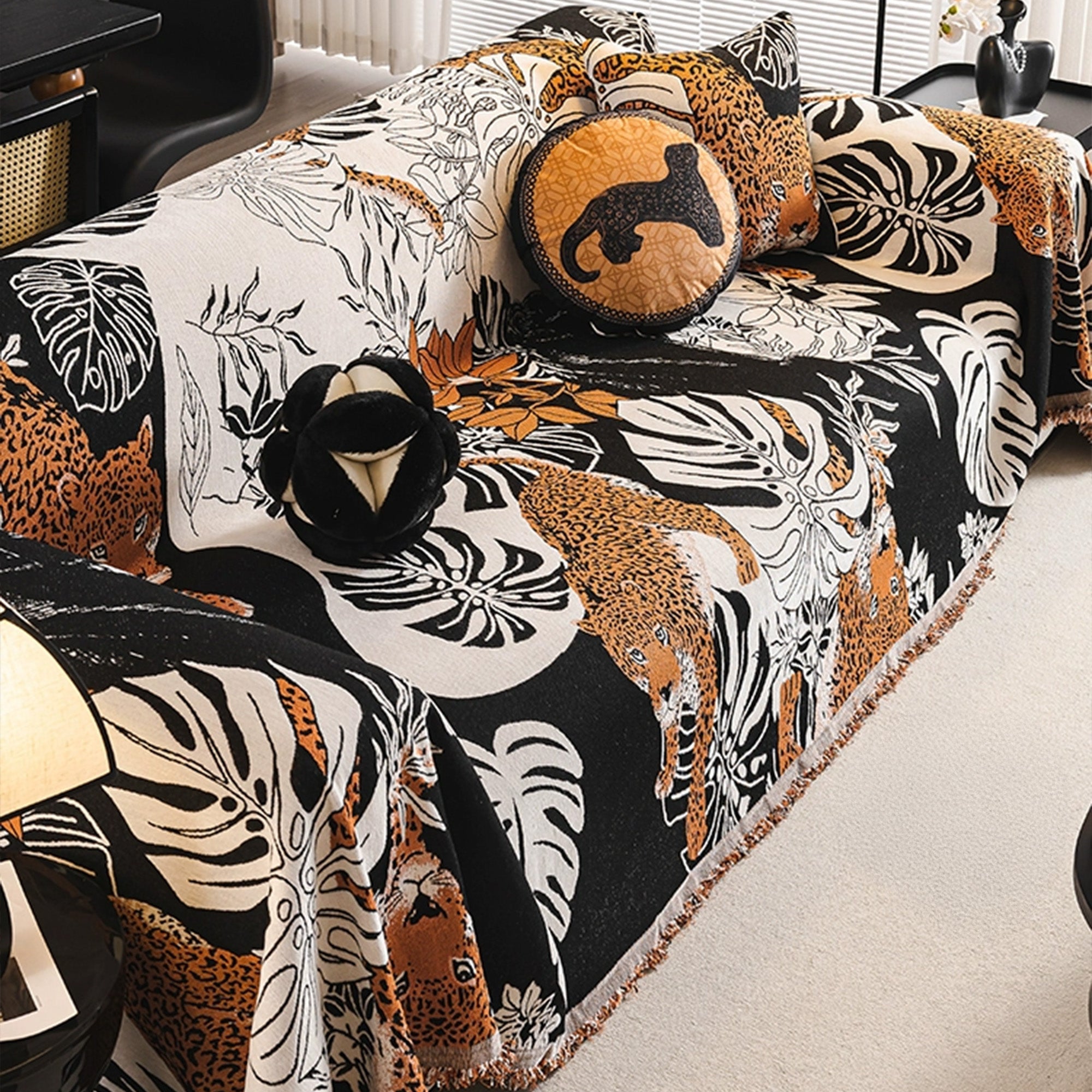 أضف لمسة جريئة مستوحاة من رحلات السفاري إلى غرفة معيشتك مع غطاء أريكة الشنيل المقاوم للخدش بنقشة نمر الغابة. يجمع قماش الشنيل الفاخر بين طبعة الغابة الجريئة والمتانة اليومية - ناعم الملمس ولكنه متين بما يكفي لتحمل الحيوانات الأليفة والمخالب والاستخدام اليومي. لفّه في ثوانٍ لتحديث فوري للأناقة وحماية شاملة موثوقة.